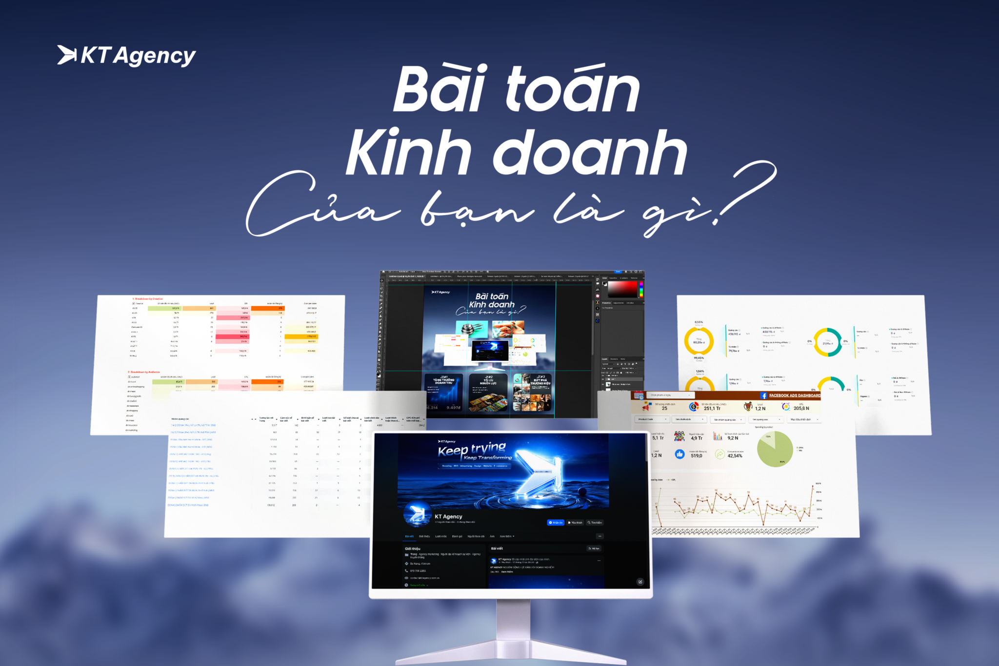 Tại KT AGENCY, Chúng tôi tự hào là một đội ngũ kiến tạo nên nguồn động lực giúp doanh nghiệp bạn vượt qua mọi rào cản. Chúng tôi không chỉ cung cấp dịch vụ, chúng tôi đồng hành cùng doanh nghiệp xây dựng những chiến lược phát triển doanh thu bền vững. Với tư duy phân tích sâu sắc, sự am hiểu dữ liệu và tinh thần tiên phong, đội ngũ KT AGENCY cam kết thực hiện những bước nhảy hoàn hảo trong chiến lược Marketing của bạn, đảm bảo doanh nghiệp tiến về phía trước với tốc độ và hiệu quả tối ưu nhất.